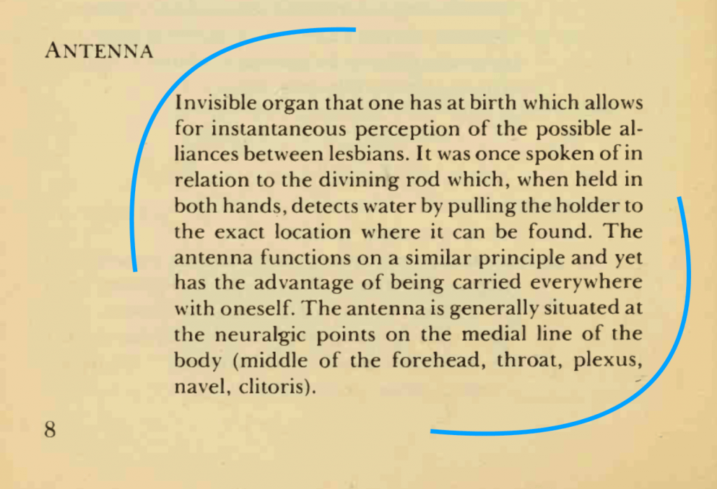 Re-reading “Lesbian peoples: material for a dictionary” (1976) by Monique Wittig & Sande Zeig.